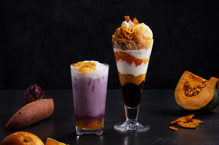 昨年人気の「紫いもラテ」がよりデザート感あふれる1杯に進化。秋を感じる鮮やかな紫いもあんとミルクを合わせたこっくりとした甘さのある紫いもラテに、瀬戸内オレンジソースをプラス。甘さの中に爽やかな酸味とほろ苦さが加わり、最後まで飲み飽きない新感覚の秋ドリンクに仕上げました。