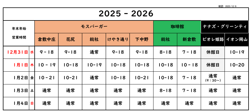 本年も残り少なくなって参りました。年末年始の弊社店舗の営業時間ご案内申し上げます。